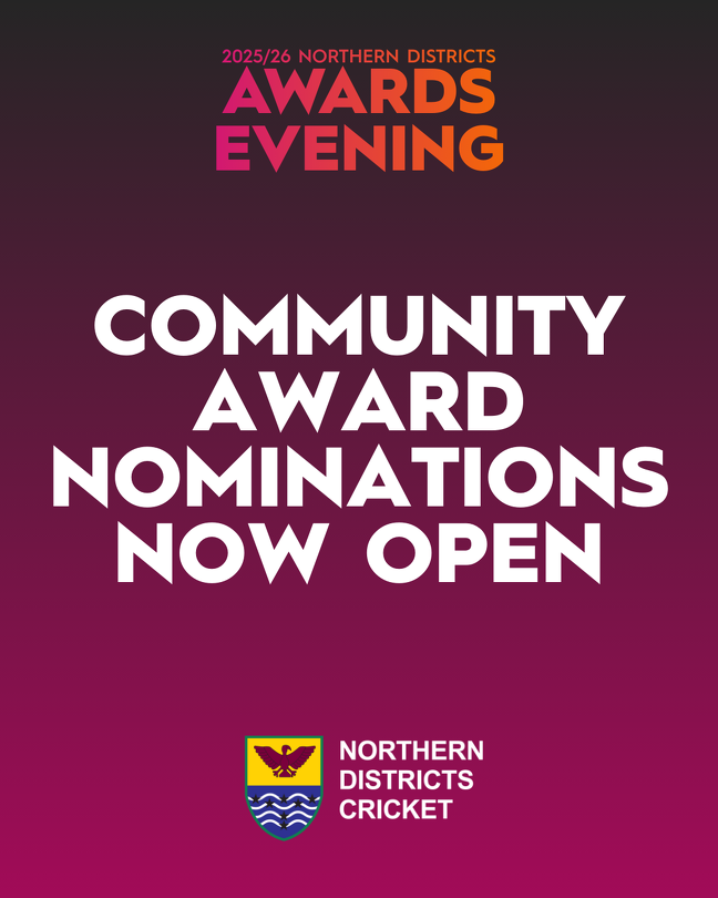 9 Feb 2026Nominations for the 2025/26 Northern Districts Cricket Community Awards are now OPEN! These awards recognise the true cricketing heroes across the ND region that go the extra mile to help provide quality experiences for our players, whether it’s a school or club which has helped make cricket a Game for All, or whether it may be an individual coach or volunteer has made a significant impact on their cricketing community.